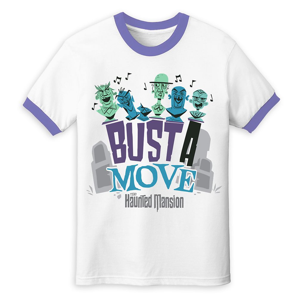 Don’t just stand around like a lifeless statue; ”Bust a move” in this all-cotton ringer tee with graphic design inspired by the ghostly Singing Busts in Disney’s The Haunted Mansion attraction.