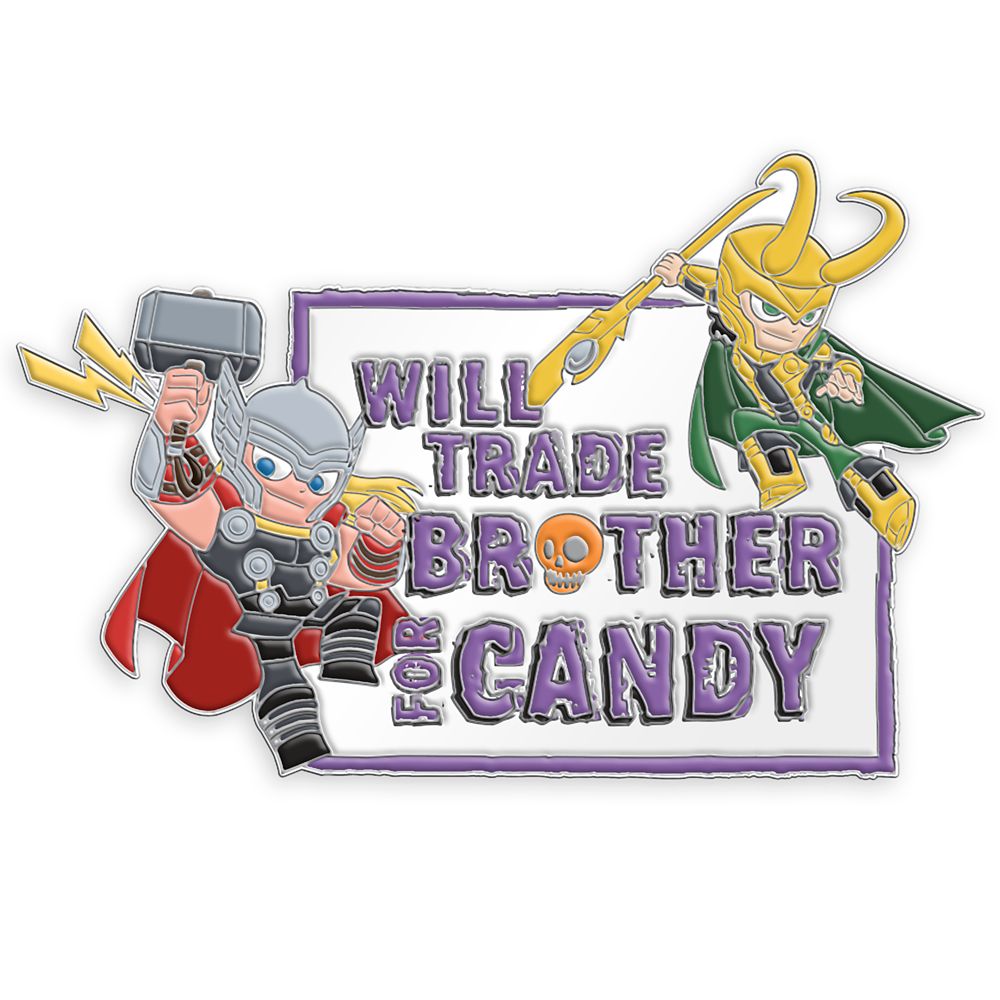 Both Thor and Loki are thinking the same thing this Halloween: ”Will trade brother for candy.” Treat yourself to this Marvel collectible cloisonné pin.