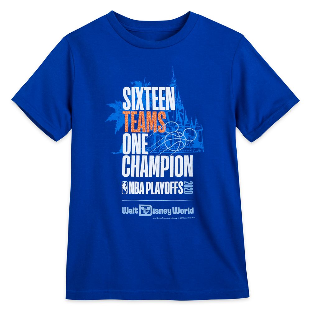 Sixteen teams play but there can only be one champion. Inspired by the NBA Experience at Walt Disney World, and featuring textured screen art, this blue crew neck top celebrates the NBA 2020 Playoffs at ESPN Wide World of Sports.