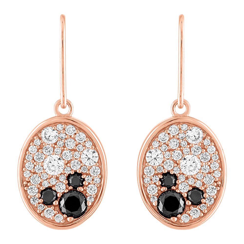 Mickey is framed in the oval design of these elegant earrings by Rebecca Hook. His iconic likeness is captured with black faceted cubic zirconia and surrounded with clear sparkling cubic zirconias on these French wire dangle earrings which are detailed with a rose gold finish.