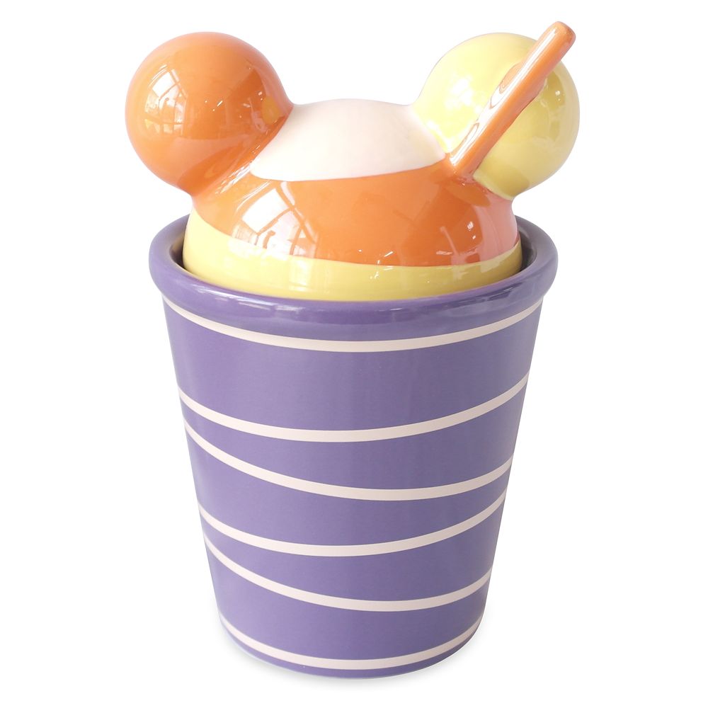 - Designed to resemble a cup of Mickey Mouse-shaped shaved ice in candy corn stripes