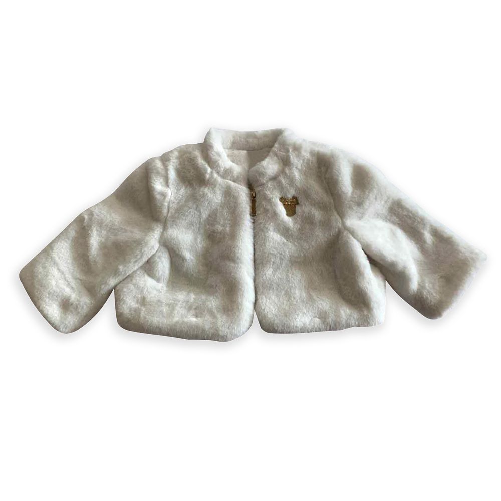 Add festive, fuzzy flair to baby’s holiday wardrobe with this Minnie Mouse faux fur jacket. The front features an iconic Minnie appliqué accented with a sequin bow.