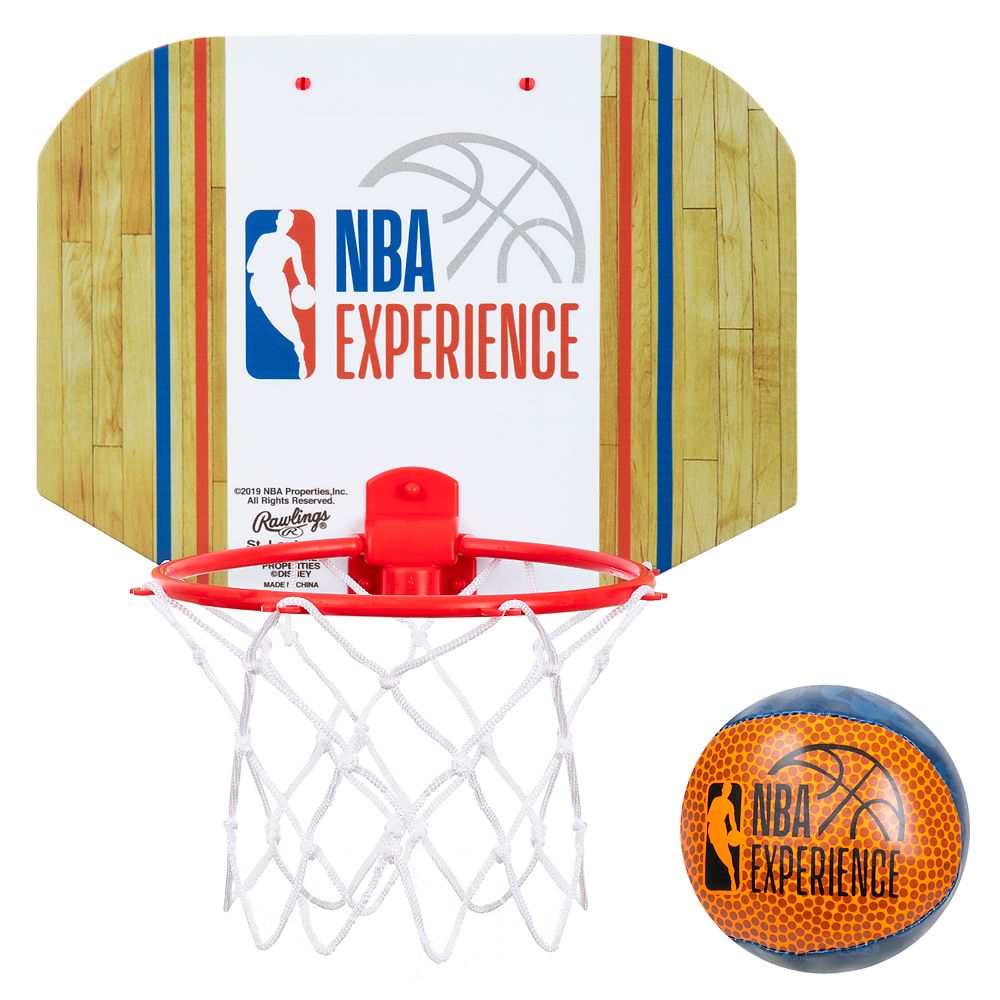Live out your hoop dreams anywhere you use this NBA Experience set. Just swish the softee ball, featuring an allover pattern of Mickey and friends plus NBA team logos, through the net, which easily attaches to the hoop by plastic hooks.