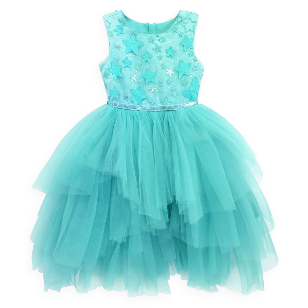 Make a splash in this fancy dress inspired by the little mermaid herself, Ariel! A constellation of starfish appliqués accent the net overlay of the bodice, while waves of tulle create skirt that is sure to dazzle wherever you set your feet ashore.