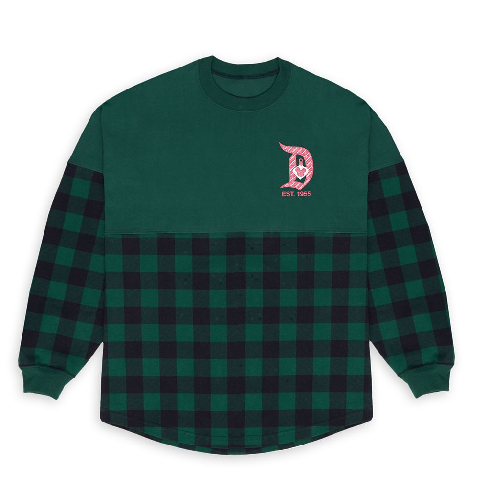 Get in the holiday Spirit Jersey with this Disneyland pullover for adults. The festive plaid design is decorated with a Mickey icon ornament within the famous Disneyland ”D” on the front and back of this top that’s sure to become a warm favorite.
