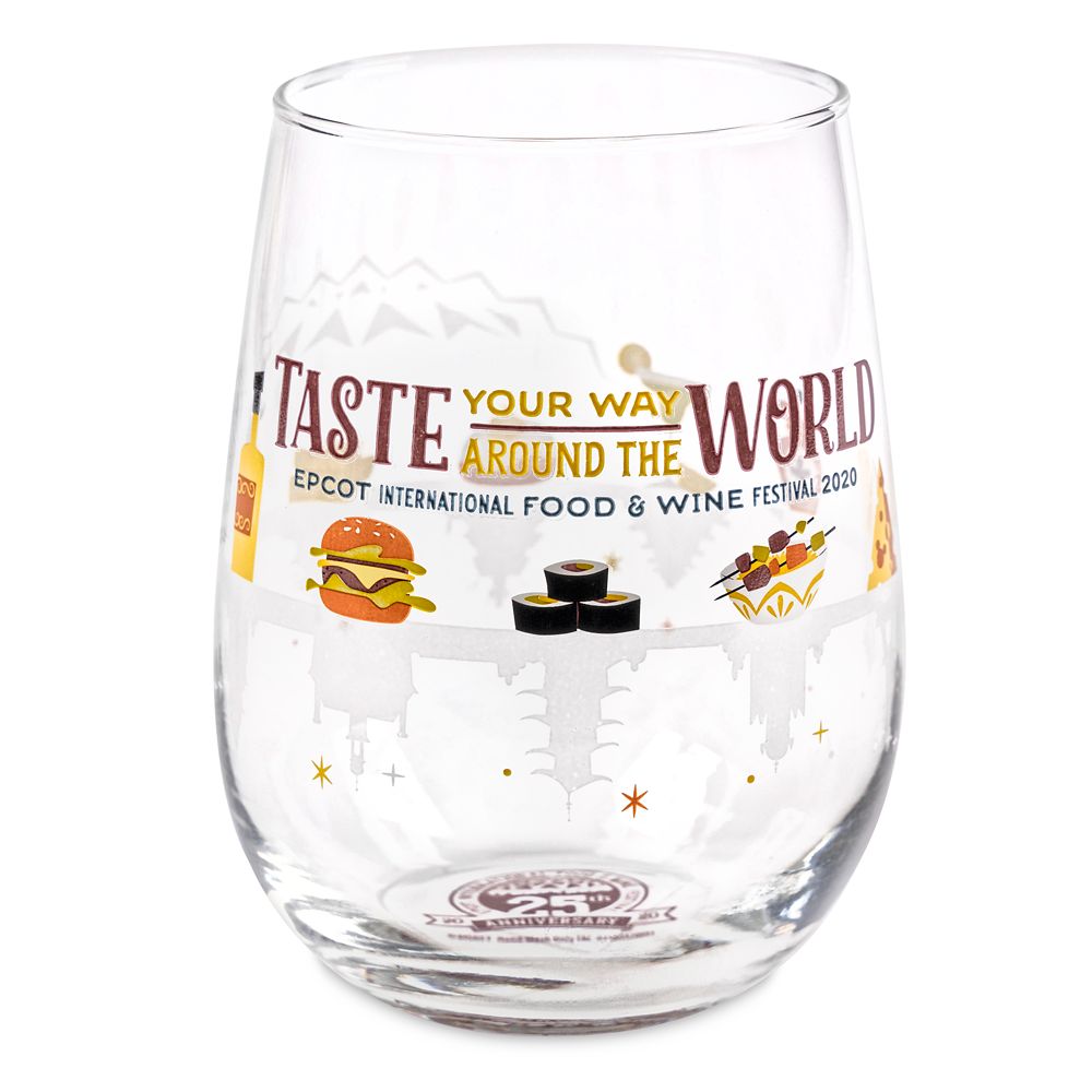 Epcot International Food & Wine Festival 25th Anniversary Stemless Wine Glass has hit the shelves