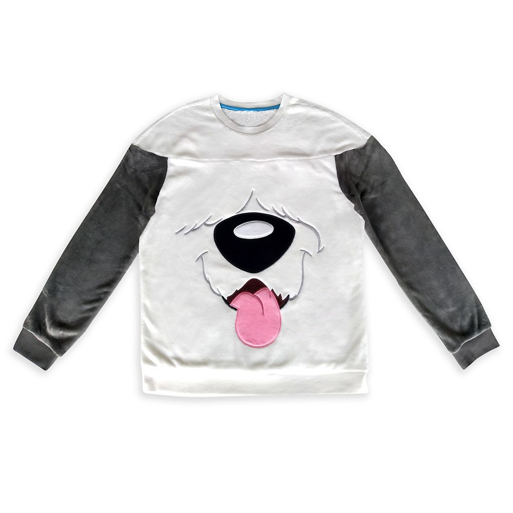 Snuggle to sleep with a shaggy sheepdog to keep watch for you all night long in this fuzzy velour pullover sleep top with fleecey lining and embroidered Max features.