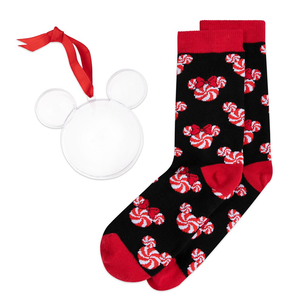Mickey and Minnie Mouse Peppermint Twist Holiday Socks in Ornament for Adults is available online