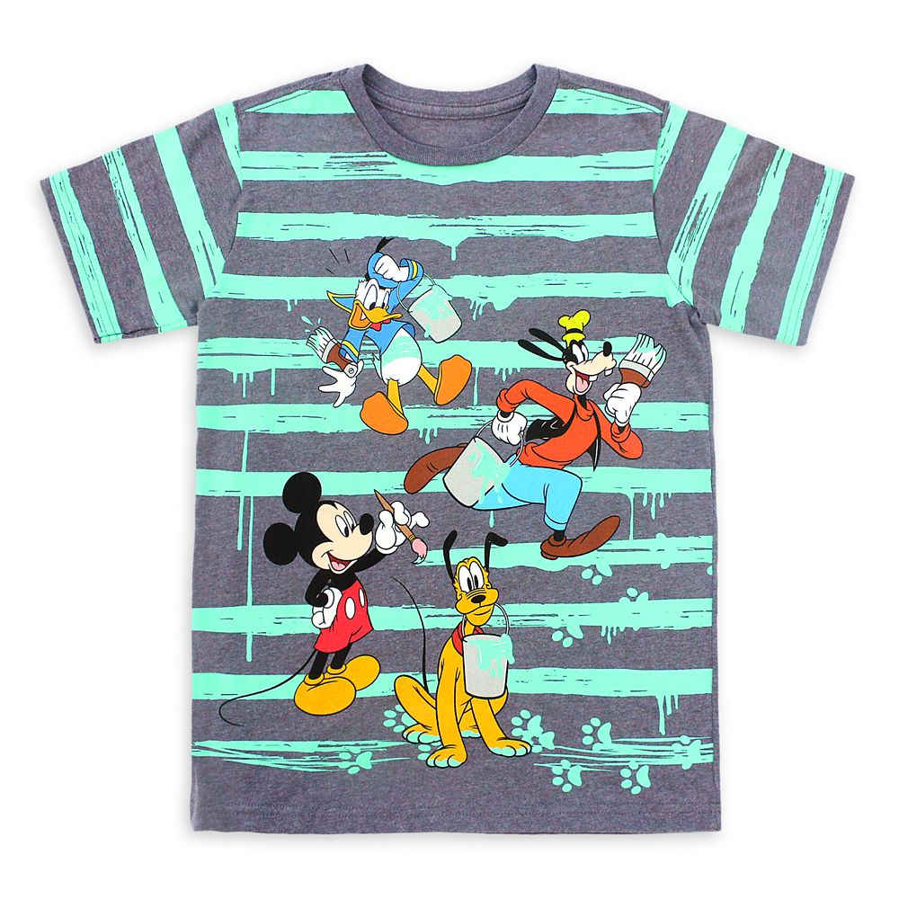 Mickey Mouse and the gang are painting the town–and you–on this heathered tee with striped front and sleeves.
