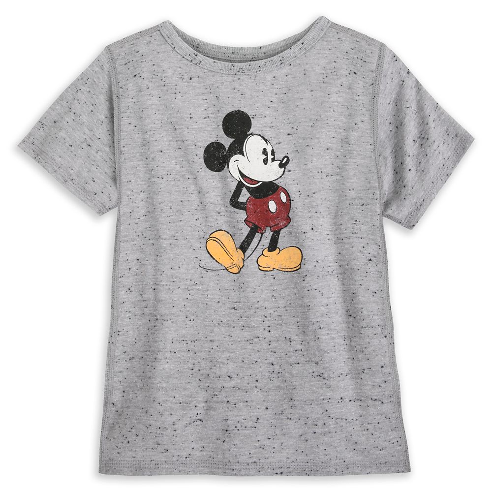 Mickey’s timeless tee shirt pose is always in fashion on this soft, speckled jersey knit tee with vintage styling. Sensory friendly.