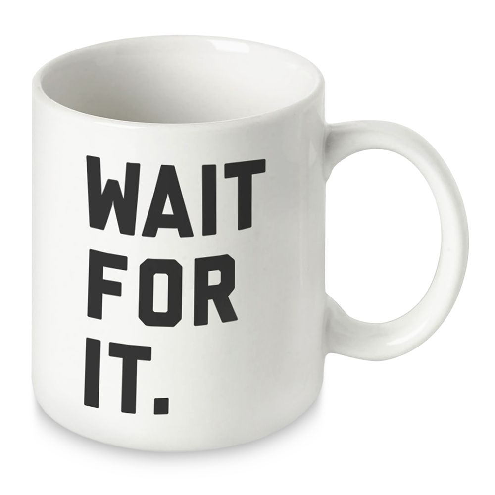 Enjoy a cup of your favorite brew as you sit and stew like Aaron Burr who has decided to ”Wait for it.” Inspired by the hit musical Hamilton, this ceramic mug features screen art on the handle and the interior bottom as well.