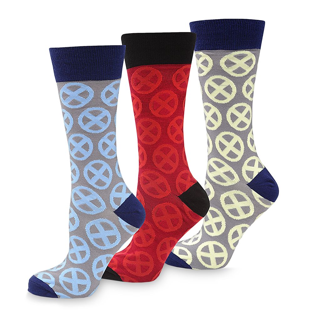 - Set includes three pairs of socks: red, yellow and blue, each with an X-Men symbol pattern
