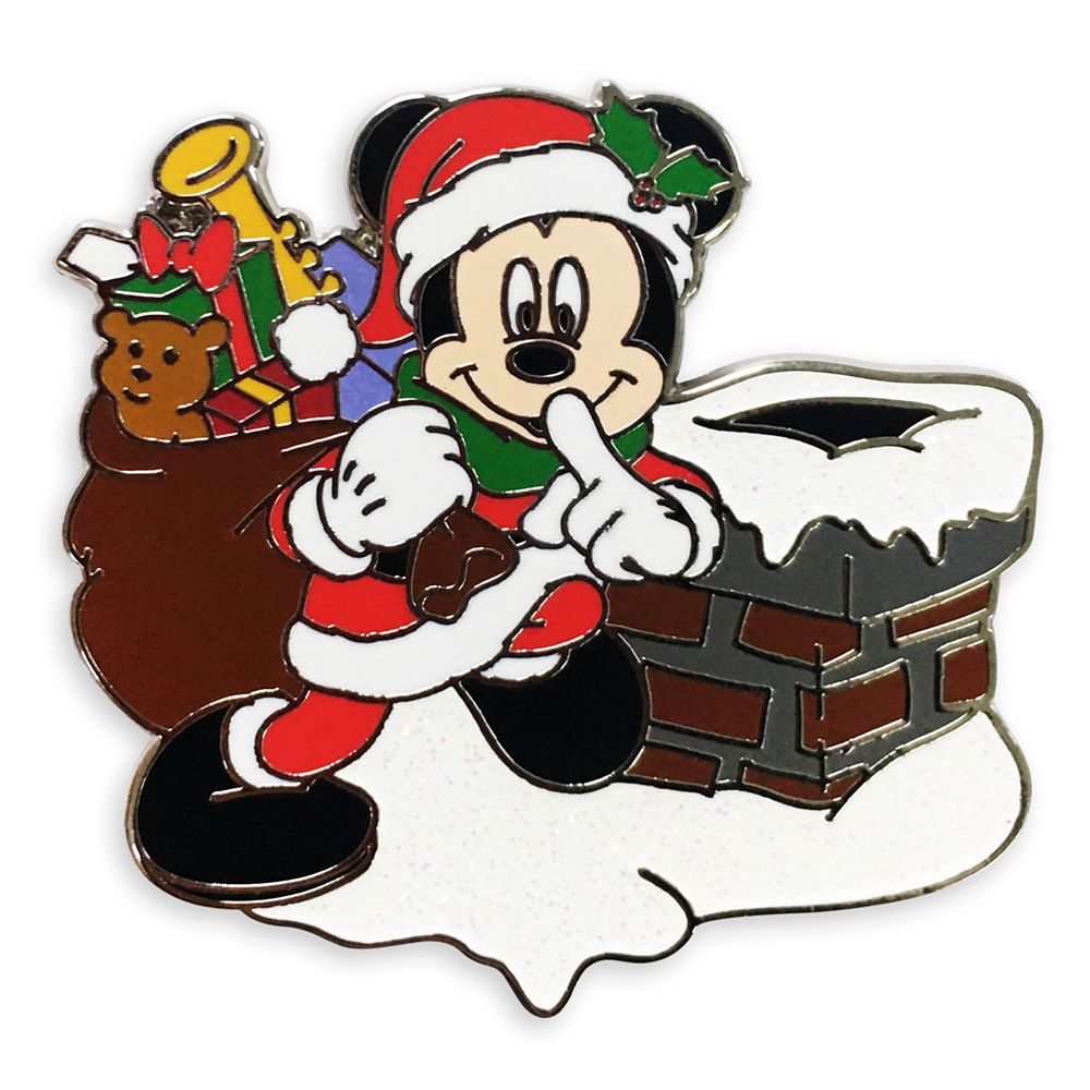 Up on the rooftop Santa Mickey Mouse pauses to make sure he won’t wake you when delivering this collectible pin to your holiday stocking.