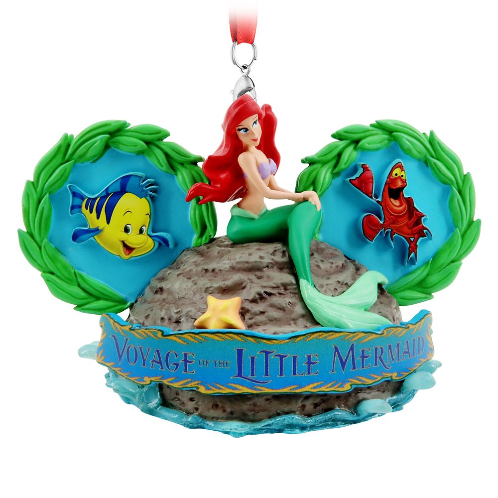Ariel, Ursula, Sebastian, and Flounder will be part of your holiday world when displaying this ear hat ornament inspired by The Voyage of the Little Mermaid attraction at Disney’s Hollywood Studios.