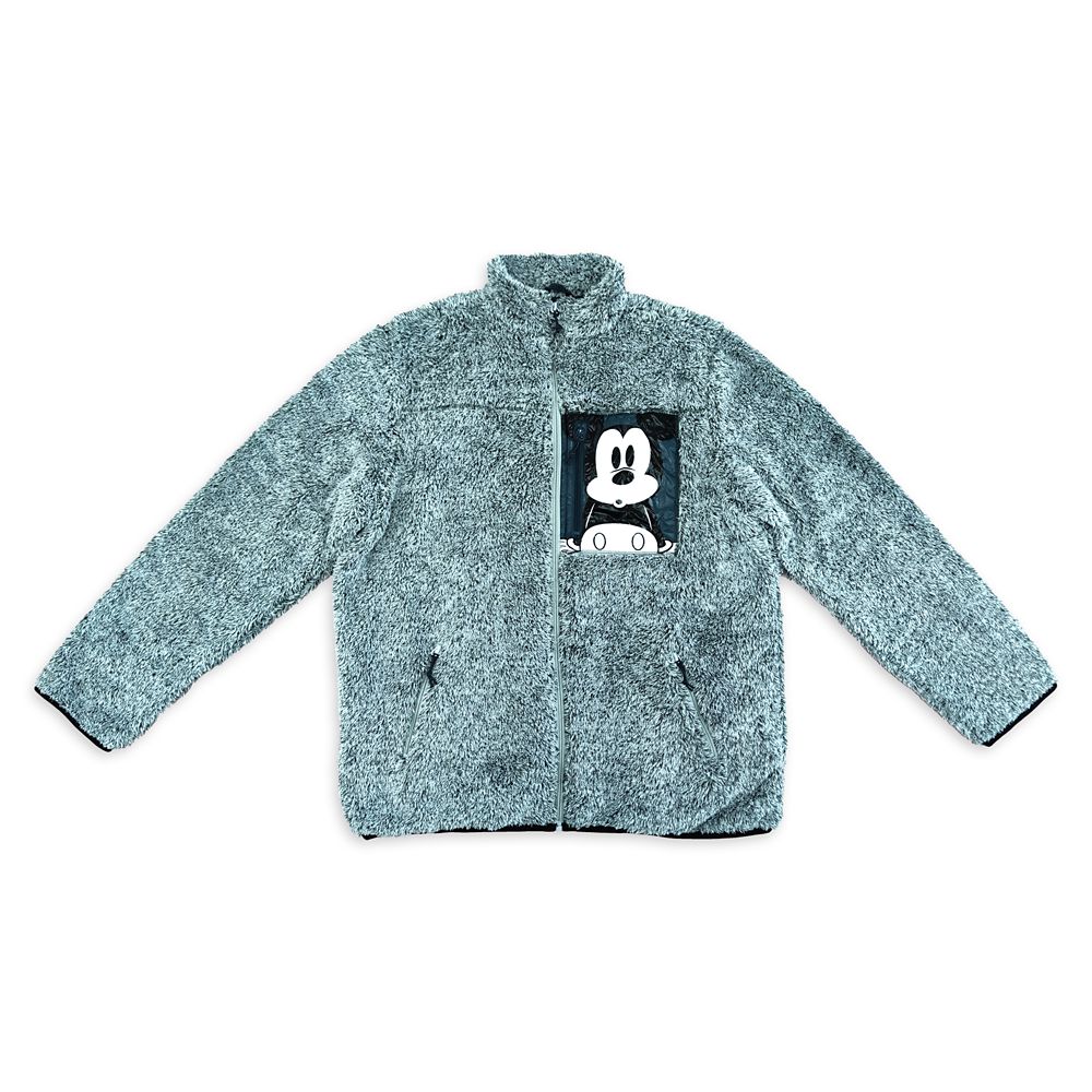 Keep your look casual and cute while staying warm and cozy in this fuzzy fleece jacket. The Mickey Mouse pocket on the chest is a swell touch, while the elastic pulls on the zippered closures of the pockets and front are practical accents on a stylish jacket.