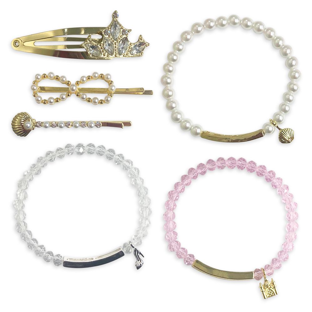 Your little one will be adorned in the finest of kingdom fashion with our Disney Princess Accessory Set. Featuring three beaded bracelets and three hair clips, this set is accented with faux pearls and jewels for a truly regal look.