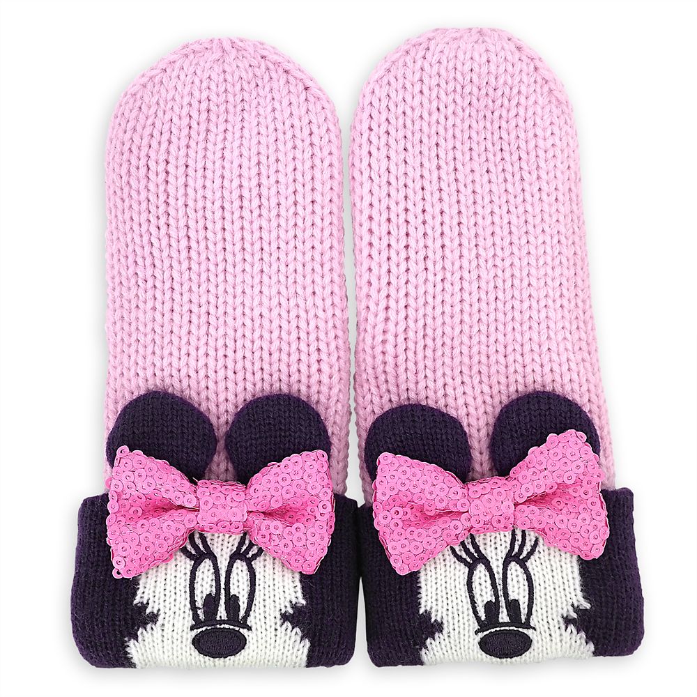 Minnie Mouse provides comfort when it’s cold with these cozy knit mittens. The bright pink yarn is accented with 3D sequin bows on the Minnie faces that are woven into the cuffs of these snuggly, fully lined accessories.