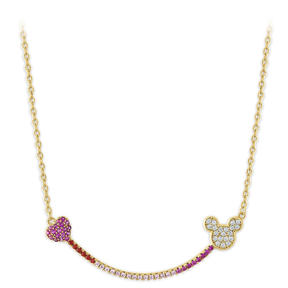 A sparkling Mickey icon and heart form a large smile with this cheery necklace. Made with dozens of handset, sparkling cubic zirconia stones, and featuring an 18K rose gold overlay, it will inspire grins wherever you go.