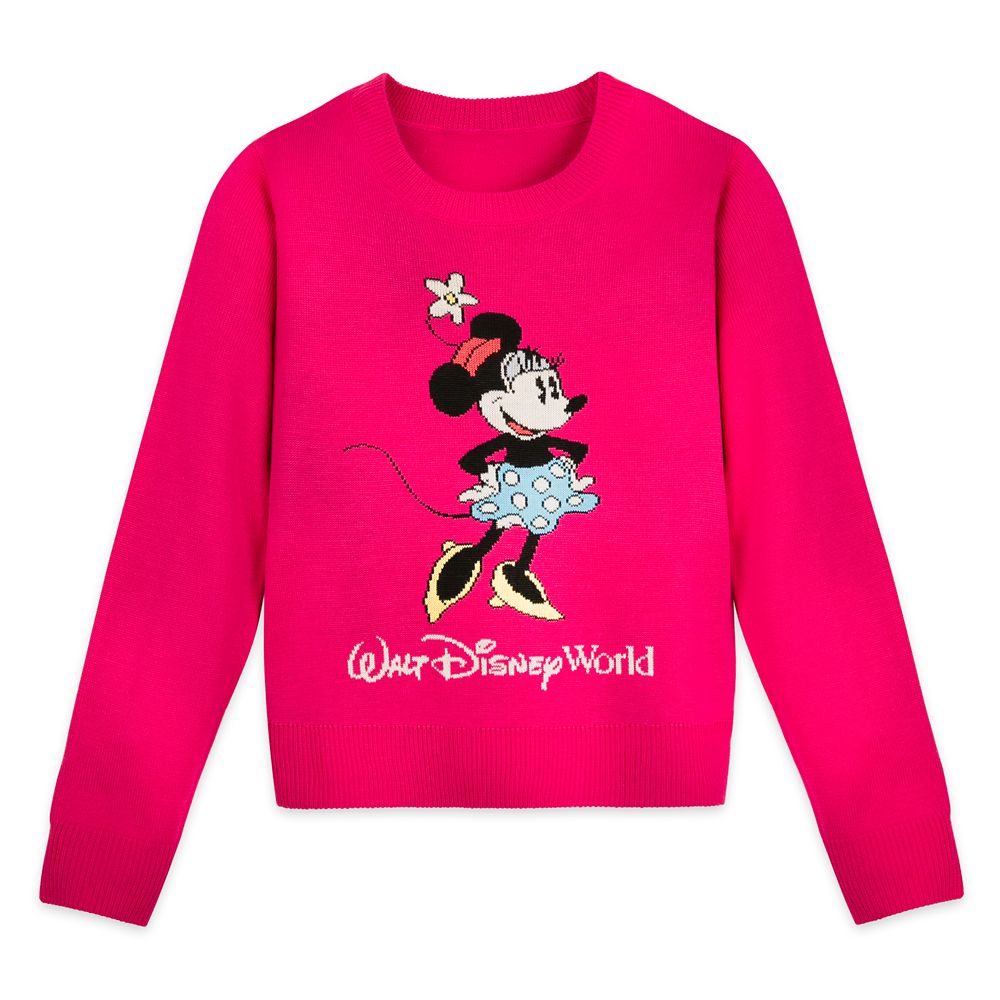 Minnie’s timeless pose is ever in fashion on this soft knit sweater to warm your heart. It comes direct to you and yours from Walt Disney World Resort.