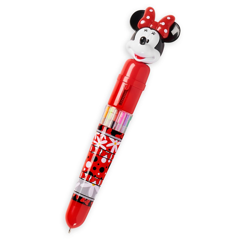 Minnie Mouse puts her writing head on with this multicolor pen. Her smiling figural face sits atop this retractable ballpoint pen which features a colorful barrel and ten different colors that you can quickly change with a simple click.