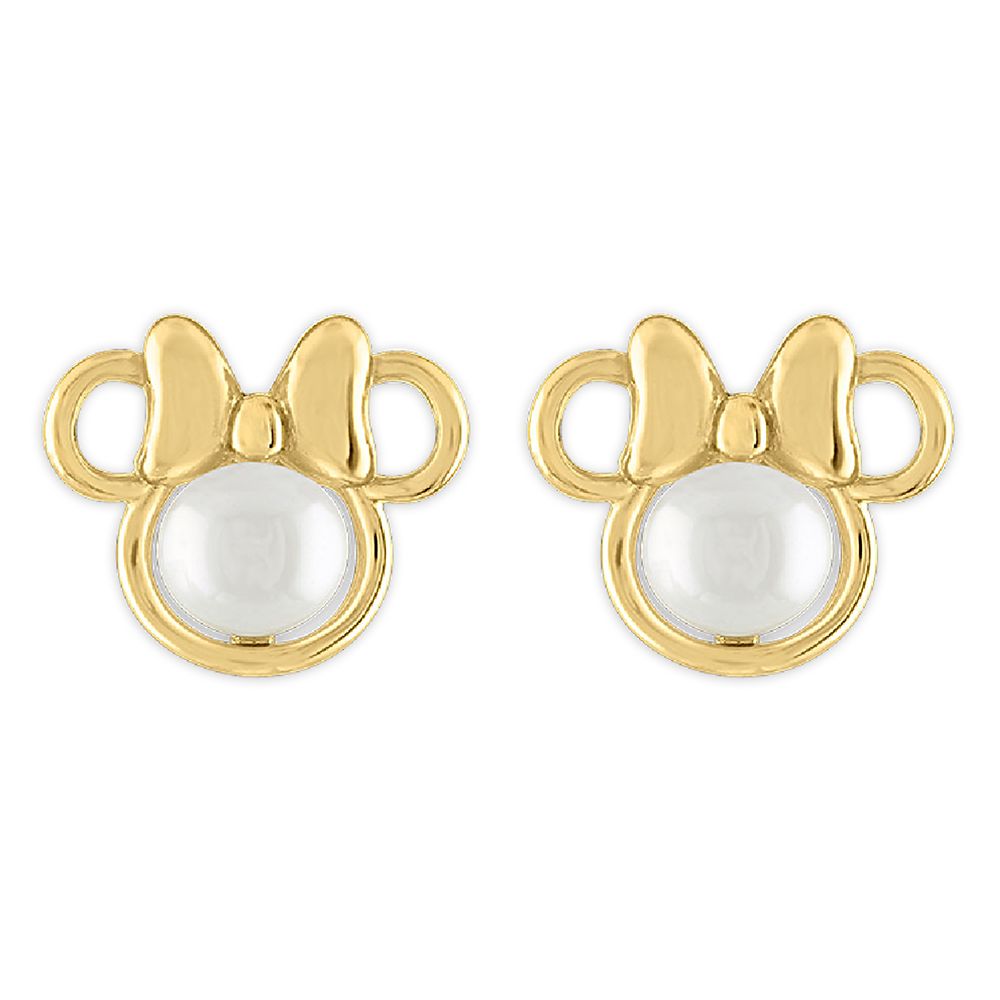 Minnie brings her own distinctive character to these classic-styled earrings. A lustrous pearlescent bead is set within a Minnie icon featuring an 18K gold overlay, creating an elegant accessory with timeless appeal.