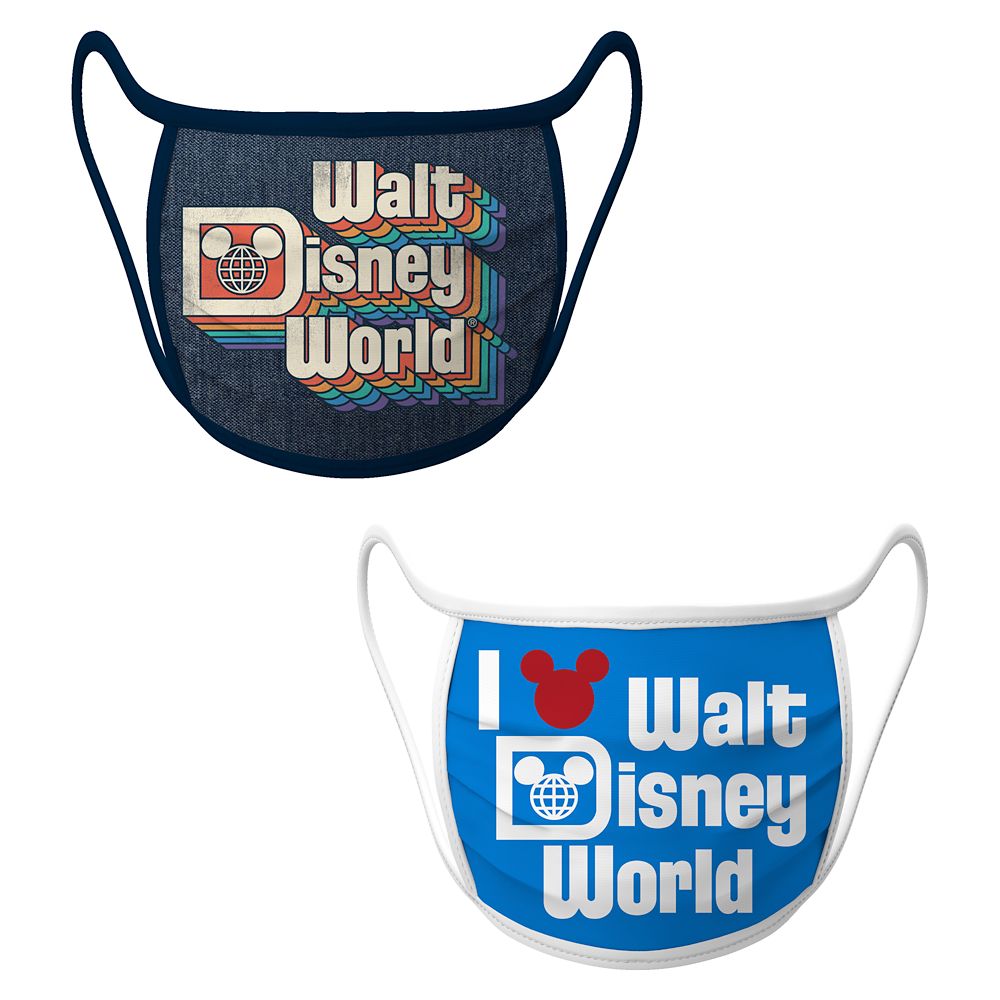 - Designs include black mask with Walt Disney World logo and blue and white mask with ”I ♥ Walt Disney World”