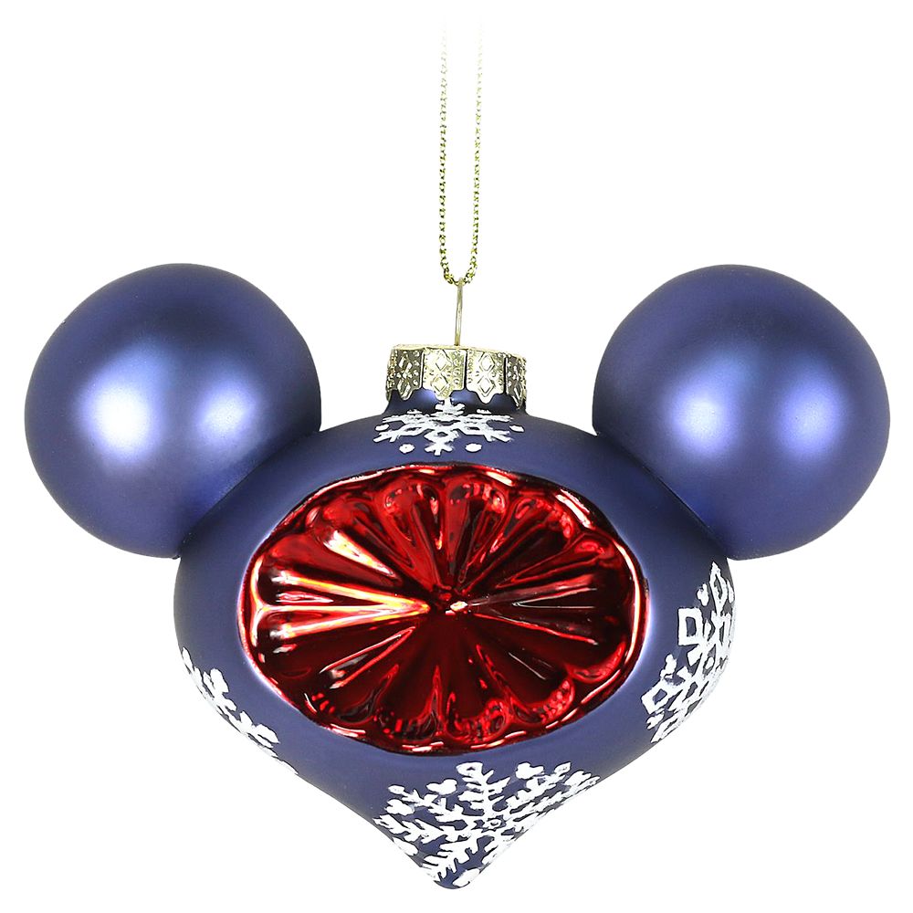 This set of four nostalgic Mickey-eared glass ornaments shimmer and shine like icy droplets to create magical moments for your holiday tree.