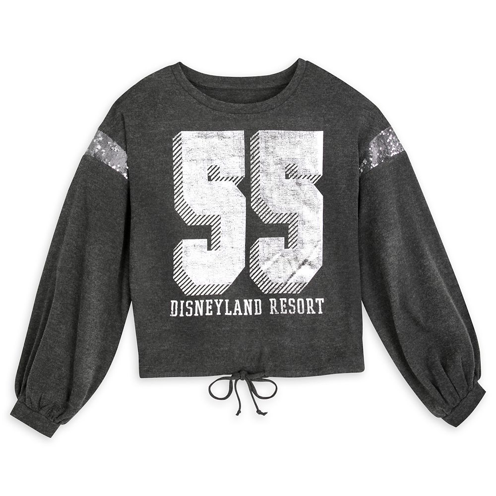 Sport this stylish Disneyland Sequin Cropped Top for Women any time you want to add a little dazzle to your look while keeping comfy. Direct from The Happiest Place on Earth, this pullover features a drawstring hem, full sleeves, and sequins details on the dropped shoulders.