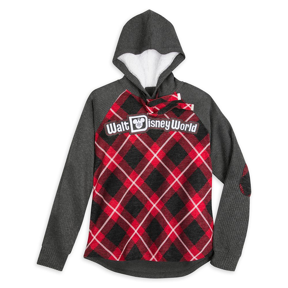 Relive warm memories of The Most Magical Place on Earth in this stylish pullover direct from Walt Disney World. The red plaid front panel and elbow patches add festive to this cozy top that also features a sherpa lined hood.