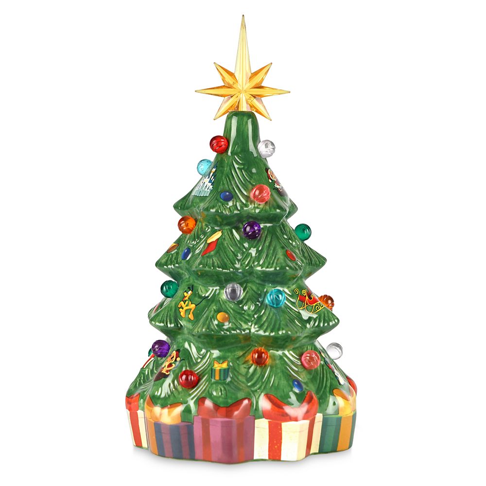 Brighten the season for your home or office with this sculpted ceramic Christmas Tree miniature lighted with tiny, twinkling bulbs and a brilliant star topper, plus Santa Mickey and the gang on decorative decals.