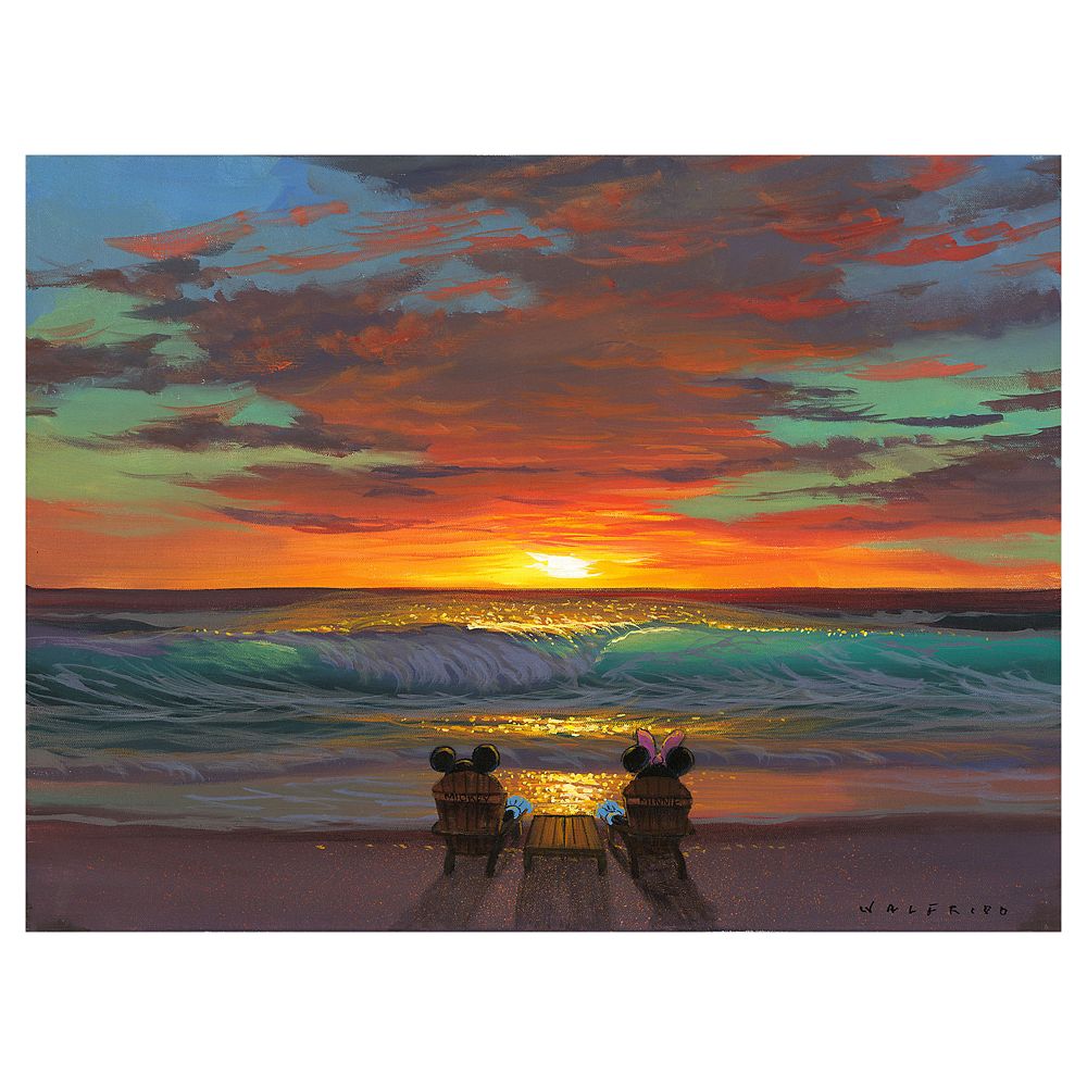 Today, November 30, 2020, Shop Disney released ‘Mickey and Minnie Mouse ”Sharing a Sunset” Giclee on Canvas by Walfrido Garcia – Limited Edition’. Now available for purchase for $149.99.