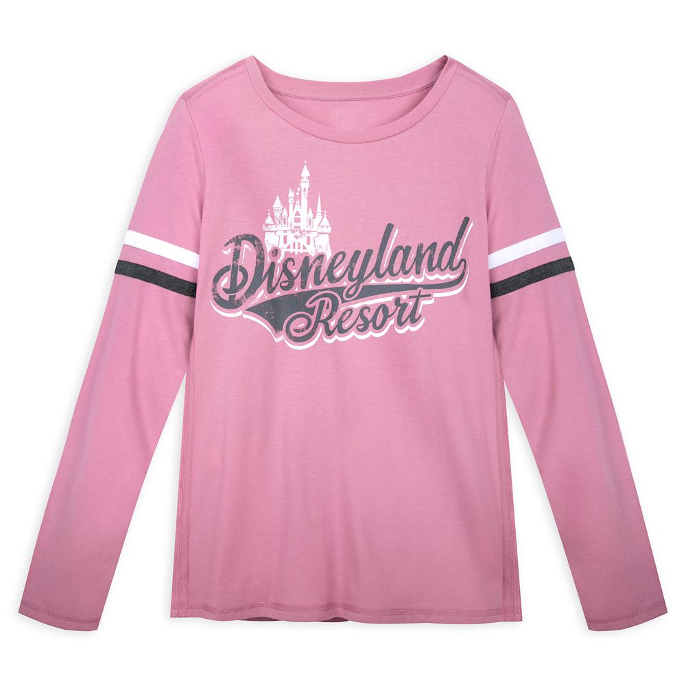 Our long sleeve pink football tee is sure to score plenty of compliments. The distressed Sleeping Beauty Castle and ”Disneyland Resort” screen art on this sporty, stylish top is a comfy reminder of visits to The Happiest Place on Earth.