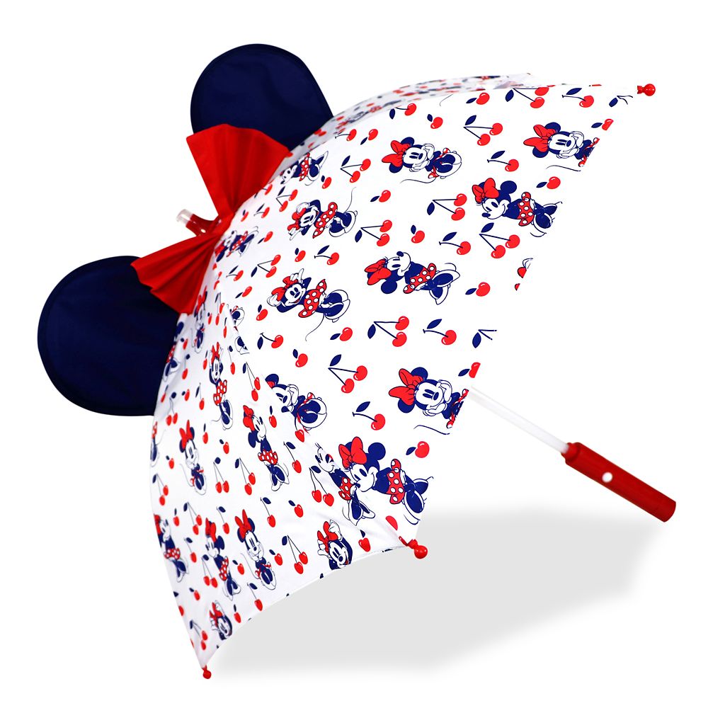Minnie is lighting up rainy days just for you. The allover pattern of Minnie and cherries on the dome offers cheerful style to any stroll through a storm and the button on the handle allows you to add a red and white glow wherever you go.