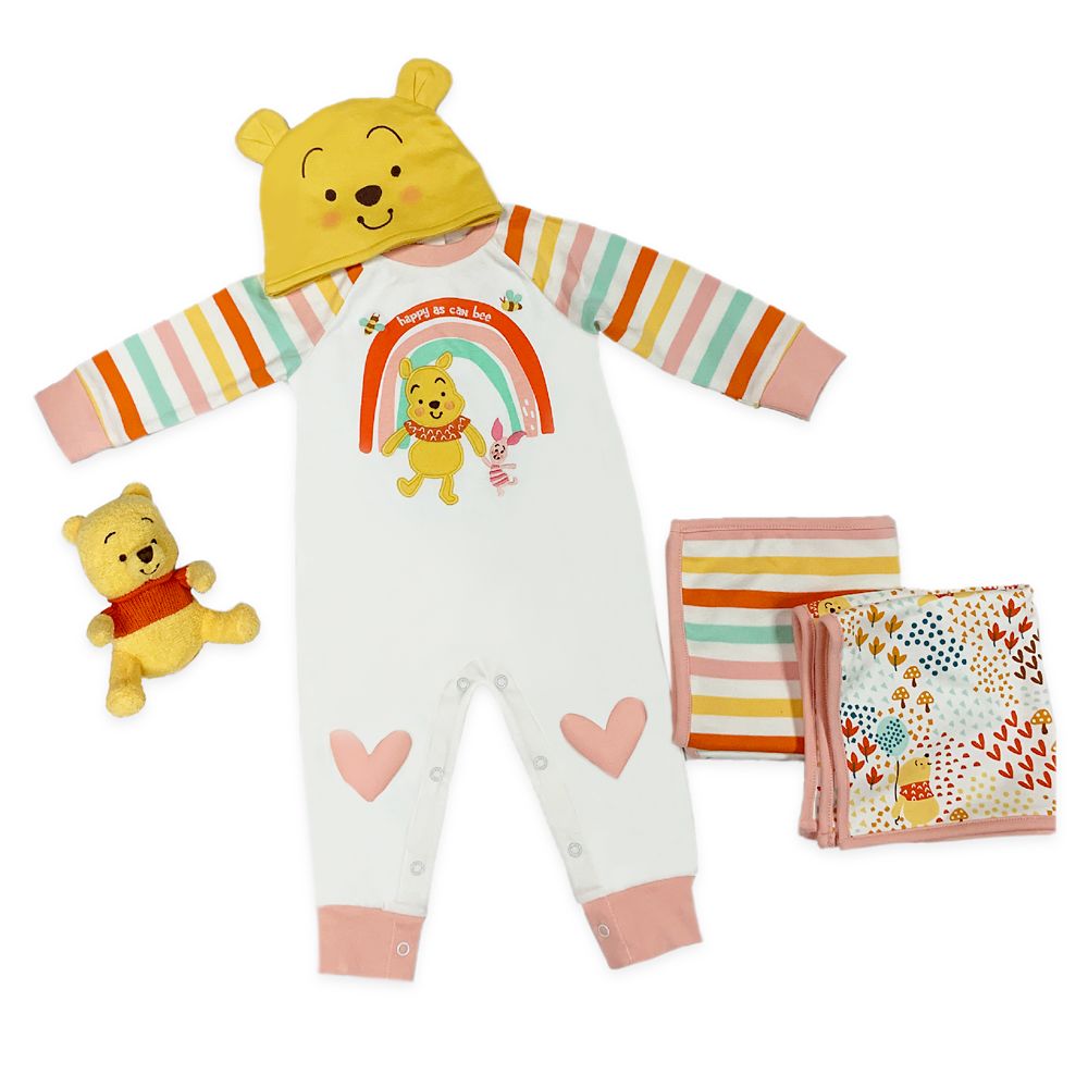 Pooh is ready for a day of play in the Hundred Acre Wood, and this gift set has all the essentials for a splendiferous time. Baby will love the romper, hat with ears, two burp cloths, and new plush Pooh friend.