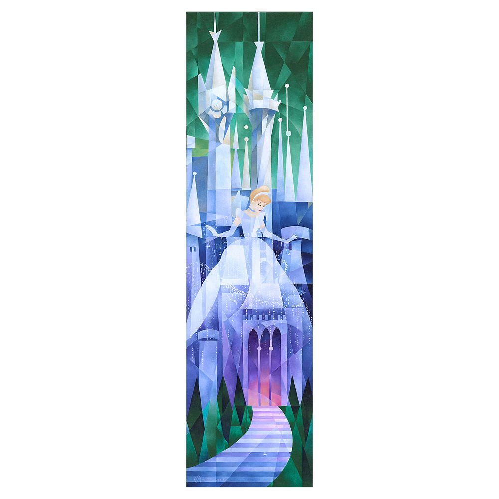Cinderella appears almost ghostlike in front of the geometric styling of the castle in this limited edition work by artist Tom Matousek. Gallery wrapped on canvas, ”Cinderella’s Castle” includes a Certificate of Authenticity and is ready for hanging.