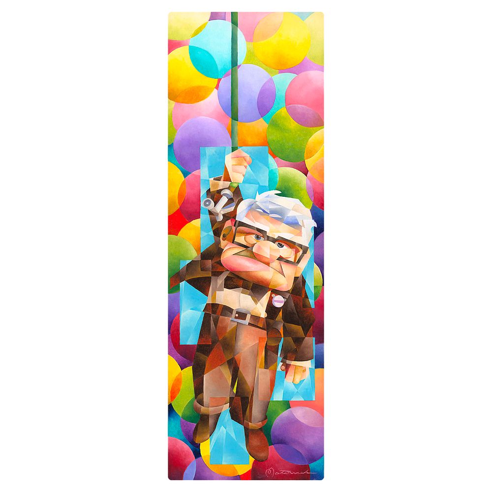 Carl Fredricksen knows adventure is out there and goes looking for it with the help of some colorful balloons in this limited edition work by artist Tom Matousek. Inspired by the Disney and Pixar movie, ”Up Goes Carl” is gallery wrapped on canvas and includes a Certificate of Authenticity.