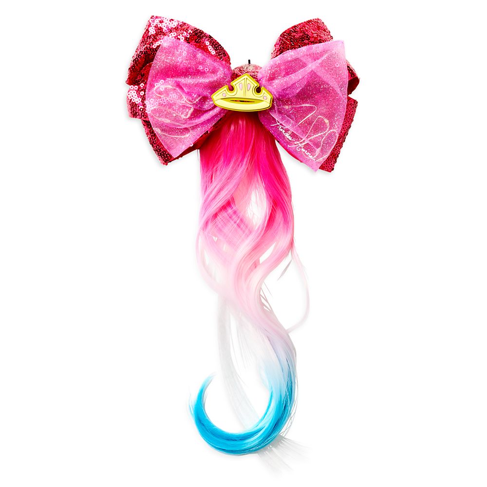 Light up your look with this bow and hair extension accessory inspired by Sleeping Beauty herself. A ”Princess Aurora” signature accents the organza bow, which contains LED lights and sits on a pink sequin bow. A multi-colored lock twists down the back.