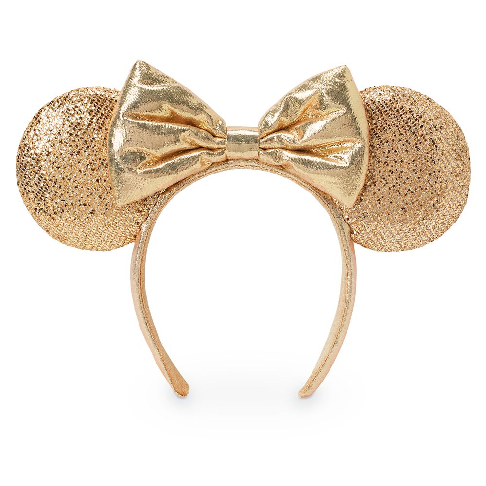 Celebrate Minnie with this glamorous headband, which features textured champagne glitter fabric ears and a lamé bow.