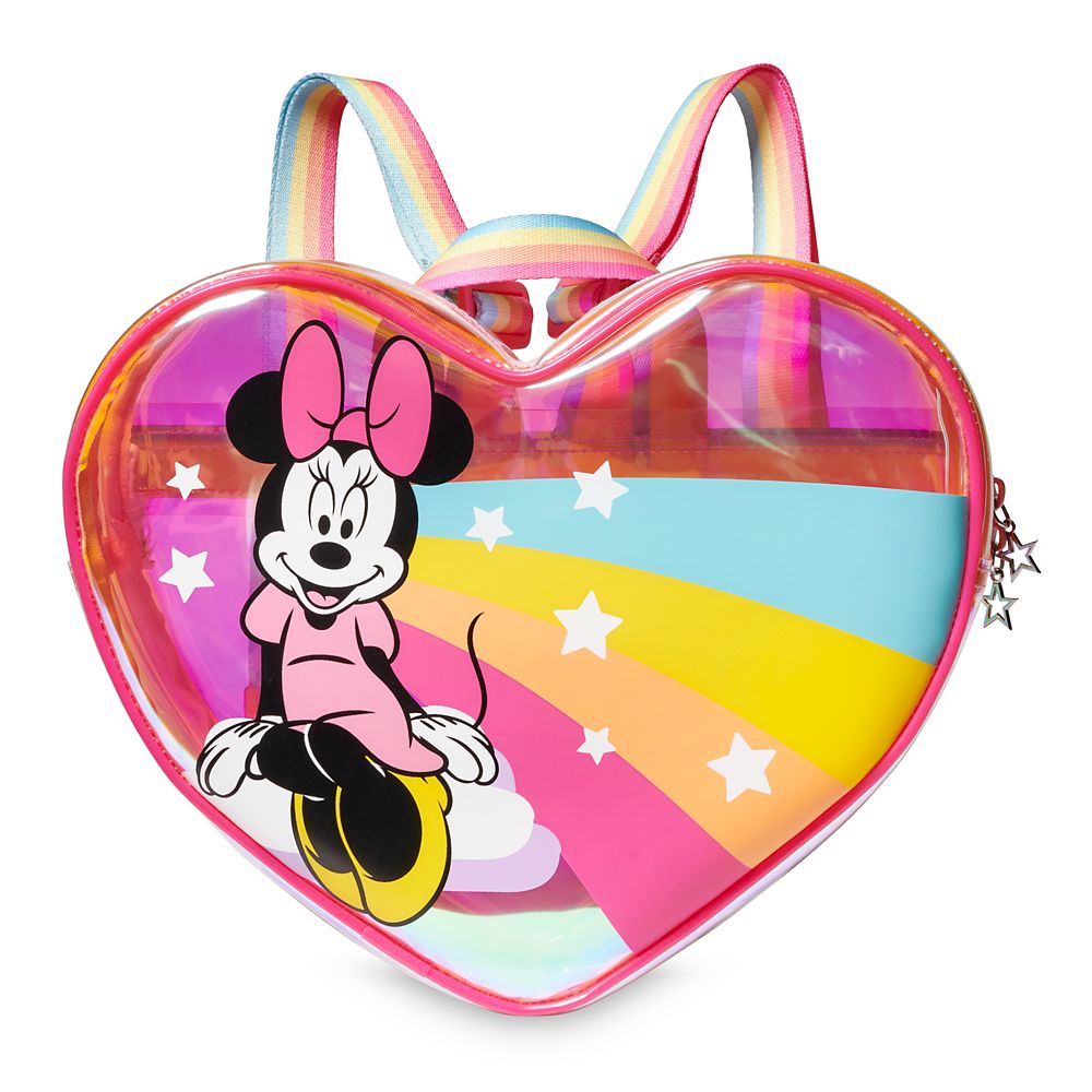 Make your swim adventures as sweet as can be with this heart-shaped swim bag featuring an Minnie Mouse and a rainbow on the front of its translucent surface. Striped adjustable shoulder straps and top carry handle add extra style to any beach or pool outing.