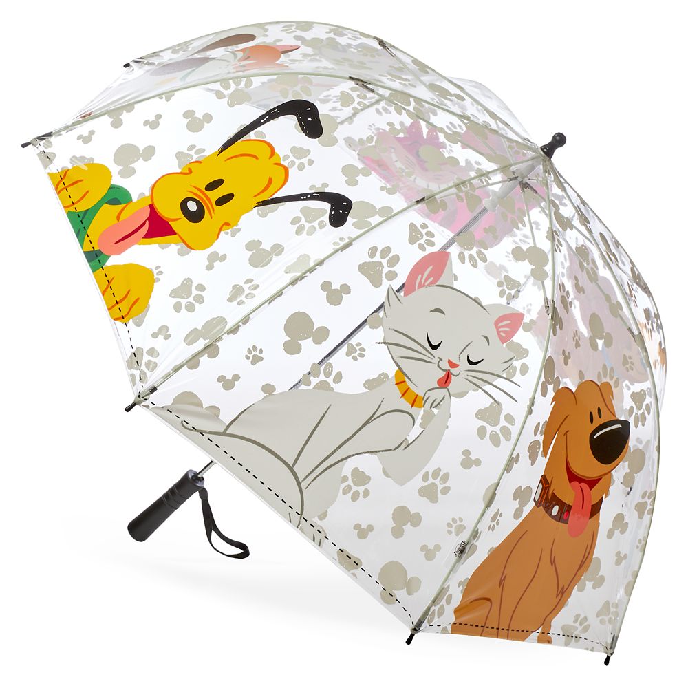 Our Disney Parks Reigning Cats and Dogs umbrella makes such a fine companion, you’ll want to take it for a walk even when it’s not raining. The translucent dome is covered in a paw pattern and each panel features a famous canine or feline characters.