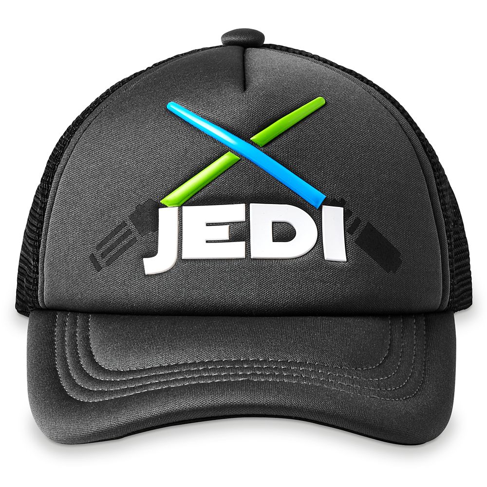 The Force is strong with this Jedi Baseball Cap for kids. The front panel features crossed blue and green lightsabers above the raised vinyl ”Jedi” lettering, for a Star Wars trucker hat that’s definitely on light side.