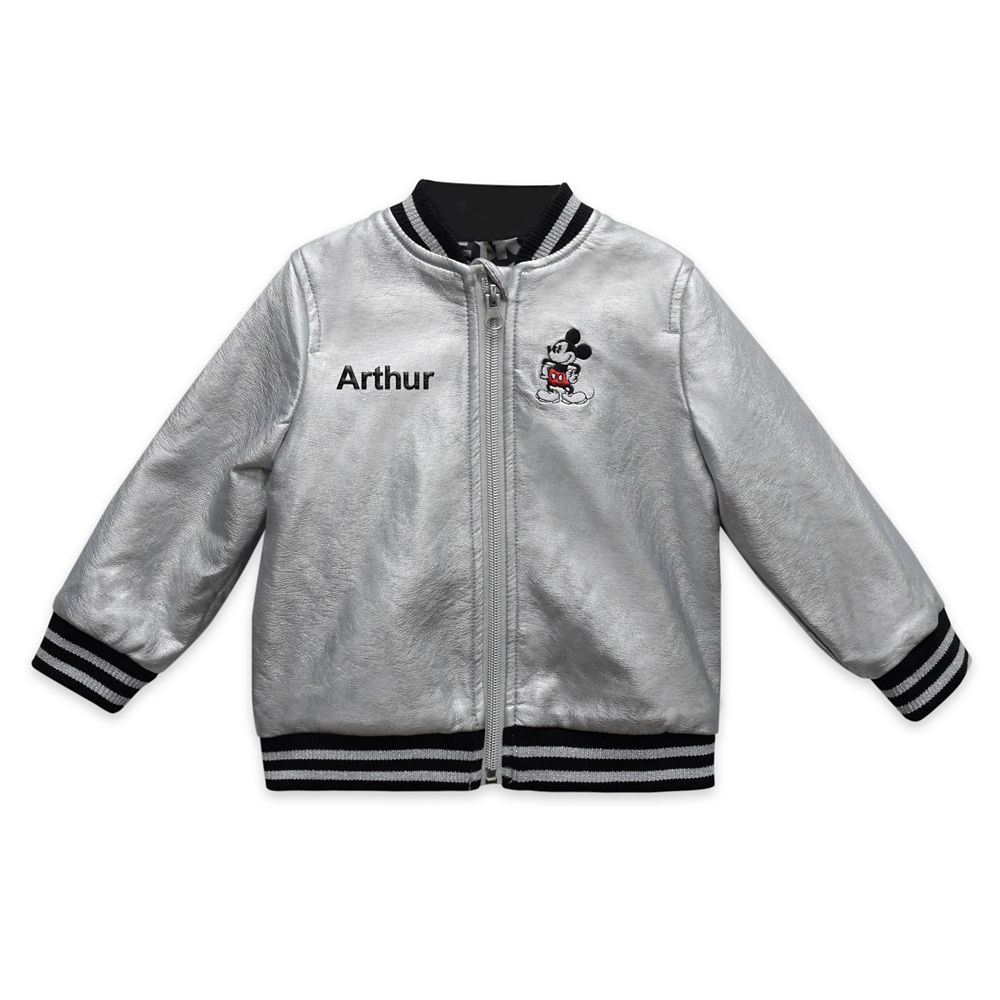 Mickey Mouse Grayscale Faux Leather Bomber Jacket for Baby here now