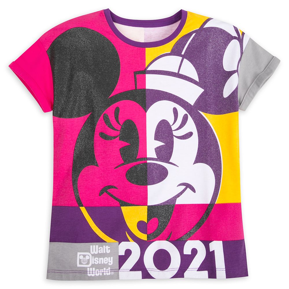Dream of a 2021 escape to The Most Magical Place on Earth in this allover-print tee with contemporary Minnie design and Walt Disney World logo. Glitter accents and color blocking on both sides add a trendy touch of style to the fun.