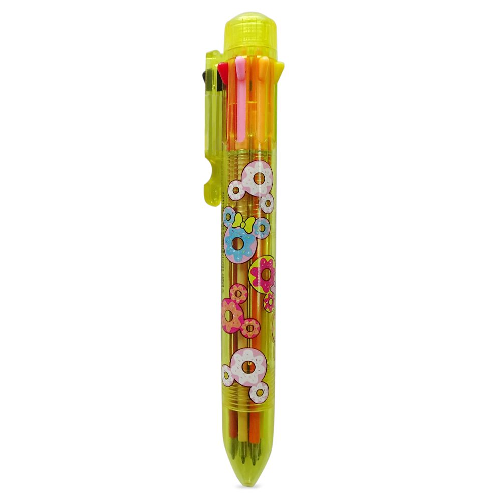 Write your sweetest shopping list ever in a colorful array of eight inks with this retractable pen. The exterior art of this translucent yellow pen features a delicious delivery of Mickey and Minnie donuts.