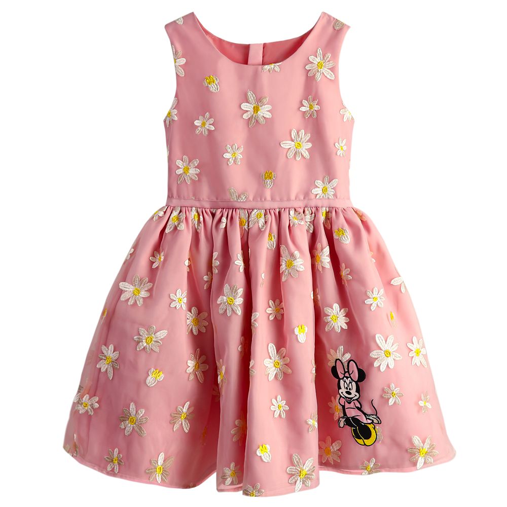 Fashionista Minnie poses sweetly on front of this daisy-covered sleeveless dress. The yellow-and-white floral appliqués on the mesh overlay of this party dress will inspire smiles wherever your little Minnie fan goes.