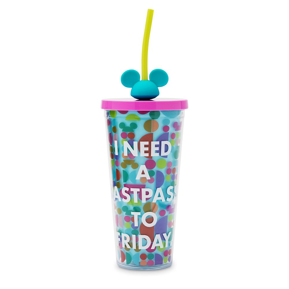 You may not be able to get a FastPass to Friday, but you can enjoy your favorite cold beverage on the go with this double-walled travel tumbler featuring a Mickey Mouse ear hat on the straw and a geometric design.