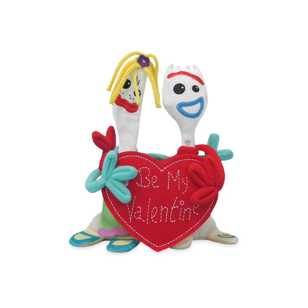 Sweethearts Forky and Karen Beverly, from Disney and Pixar’s Toy Story 4, are ready to celebrate Valentine’s Day with you! The duo are holding up a heart with a special message: ”Be my Valentine.”