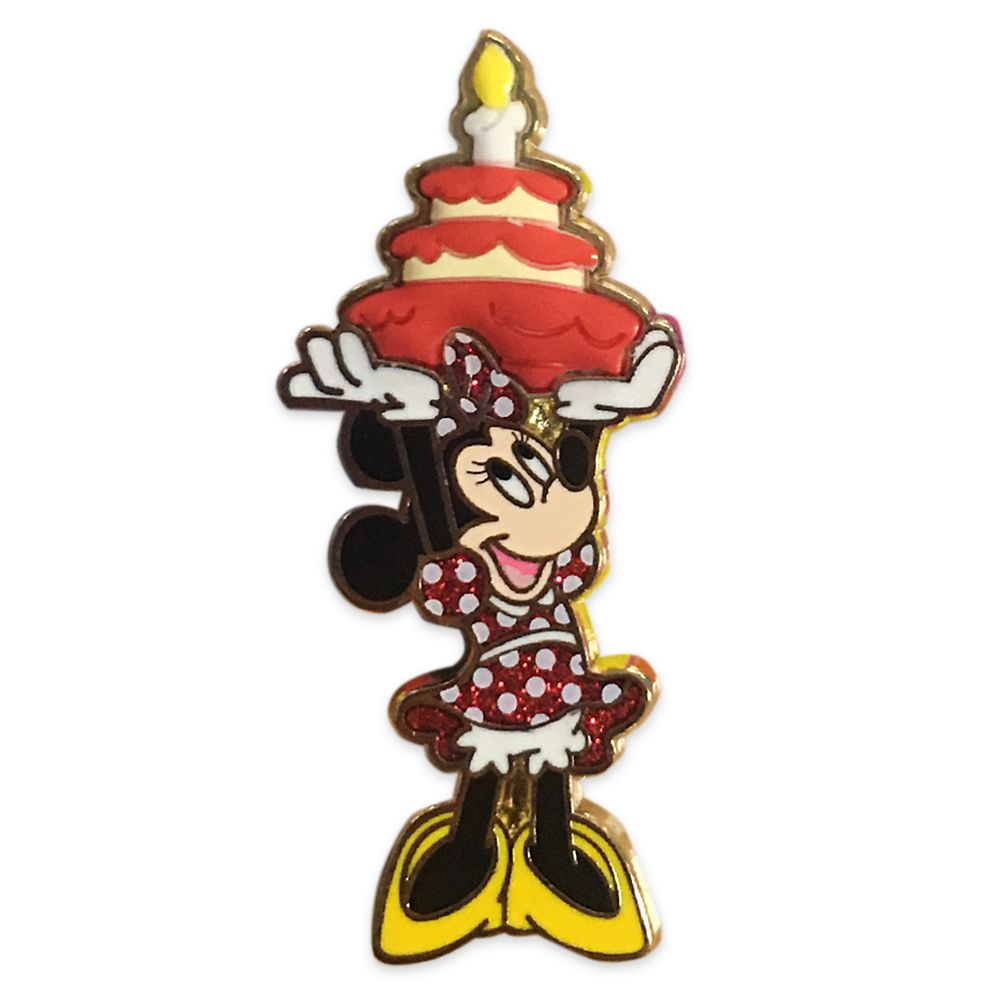 Minnie Mouse celebrates your birthday with a flair and this happy cloisonné pin featuring a 3D cake and glitter dress. Comes on a special gift tag card to personalize the surprise!