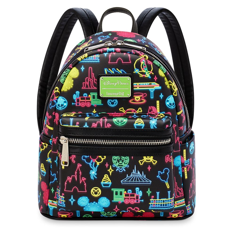 You’ll be glowing with glamour carrying this faux leather mini backpack from the Disney Parks. ”Neon” attarction icons in vibrant colors make this a cool carry-all that promises to turn the world on with positive energy.