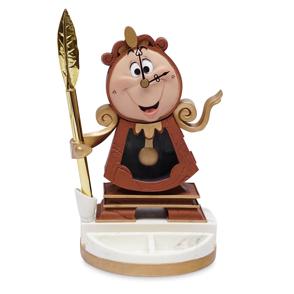 Watch the clock while you daydream with a touch of fantasy from this fully sculpted Cogsworth figure that is both a functional timepiece and a pen holder. Includes additional stationery storage recesses and a base that can hold your cell phone.